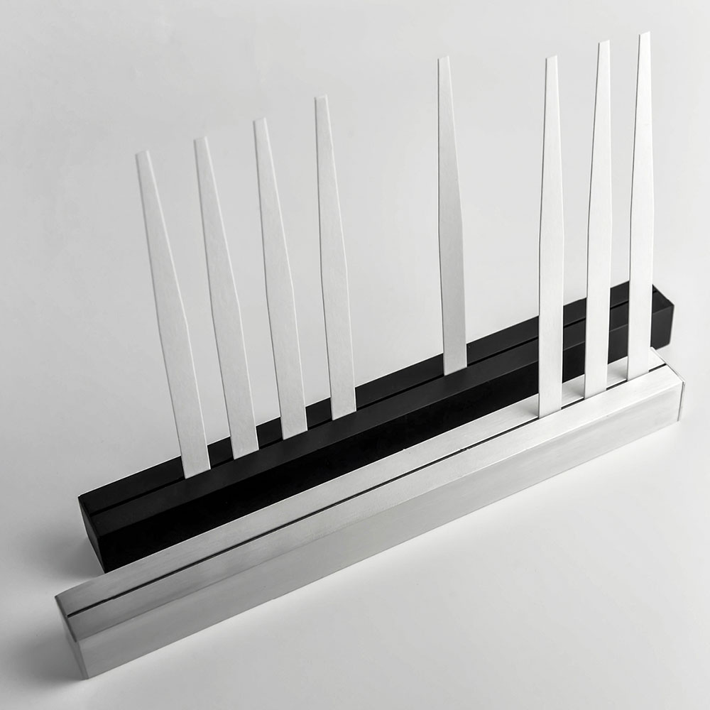 Nous avons choisi des materiaux de haute qualité comme le Zamac, alliage de 5 métaux assurant une densité et une résistance pour nos porte-mouillettes avec pinces détachables. Nos réglettes sont fabriquées en aluminium.