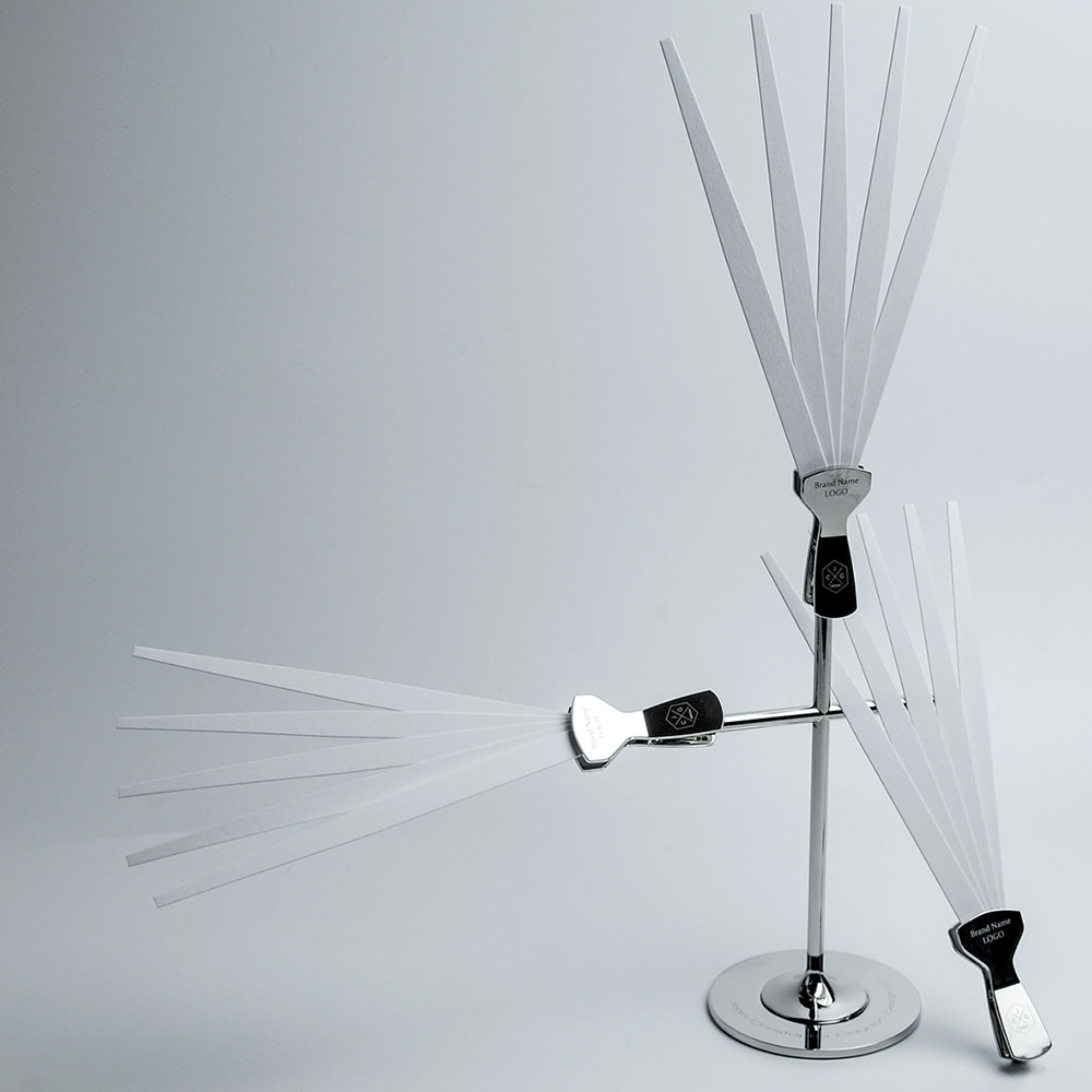 Grasse, berceau de la Parfumerie, a développé de nombreux outils dans ses laboratoires. Le porte-mouillettes en fait partie. Cet éventail permettait d'évaluer l'association des différenntes notes sur chaque touche à sentir lorque le parfumeur le faisait tourner.